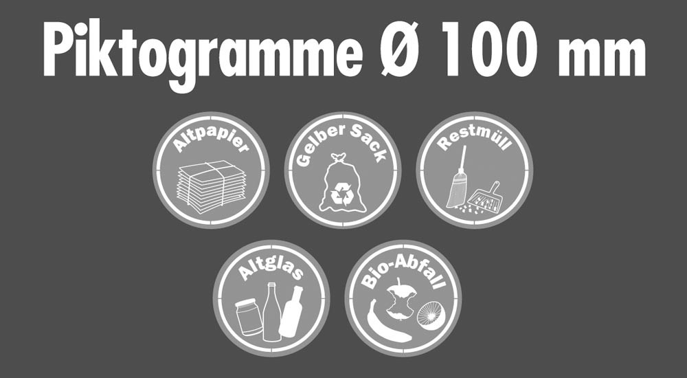 Piktogramme, Durchm. 100 mm, selbstklebend, wasserfest, transparent, Aufdruck weiß, Set mit 5 Stück EP511183