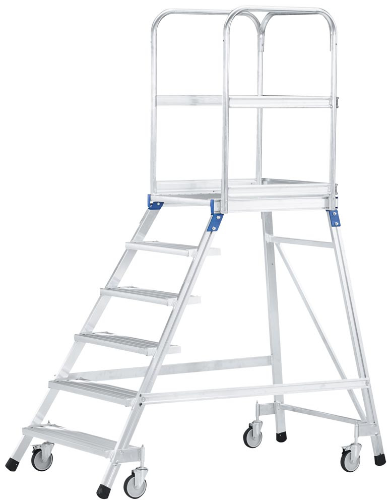 Podesttreppe fahrbar, einseitig begehbar, Podestgröße 600x800 mm, 6 Stufen inkl. Plattform, Standhöhe 1440 mm, Gewicht 38,4 kg