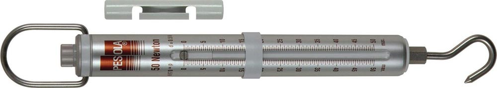 Newton · genaue handliche Federwaage mit robustem, eloxiertem und abriebfreiem Aluminiumrohr sowie langer Präzisionsskala mit hoher Auflösung · Tara- und Nullstellvorrichtung sowie dreh- und schwenkbarer Aufhängebügel · Haken dreh- und schwenkbar, sowie durch verschiedenes Zubehör austauschbar · Aufhängeelemente aus Inox · Schleppzeiger (z.B. für stehende Anzeige bei Zerreissproben bis maximal 30 kg) und handlicher, abnehmbarer Handgriff im Lieferumfang enthalten · Messmittel zur Gewichtsbestimmung und Zugkraftmessung