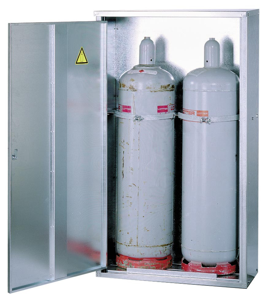 Propangasflaschen-Schrank, verzinkt, geschlossene Ausführung, mit 1-flügeliger Tür, für 2x33 kg Propangasflasche, BxTxH 840x400x1500 mm
