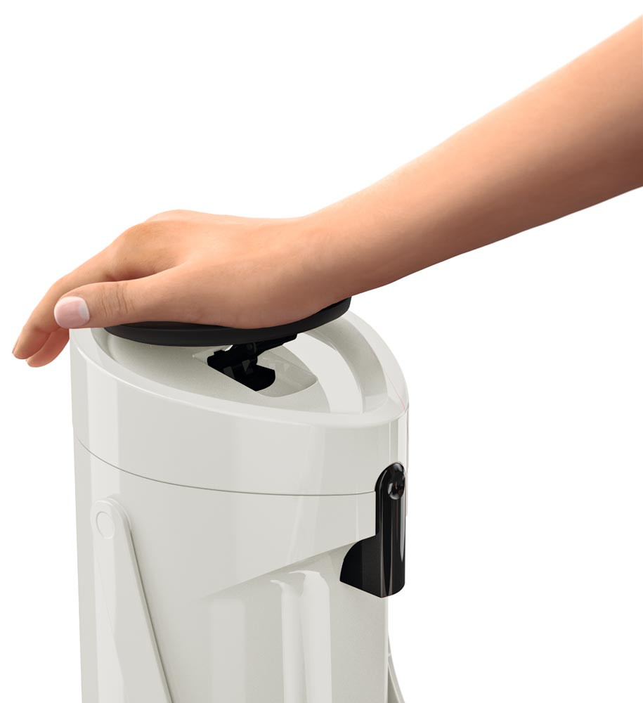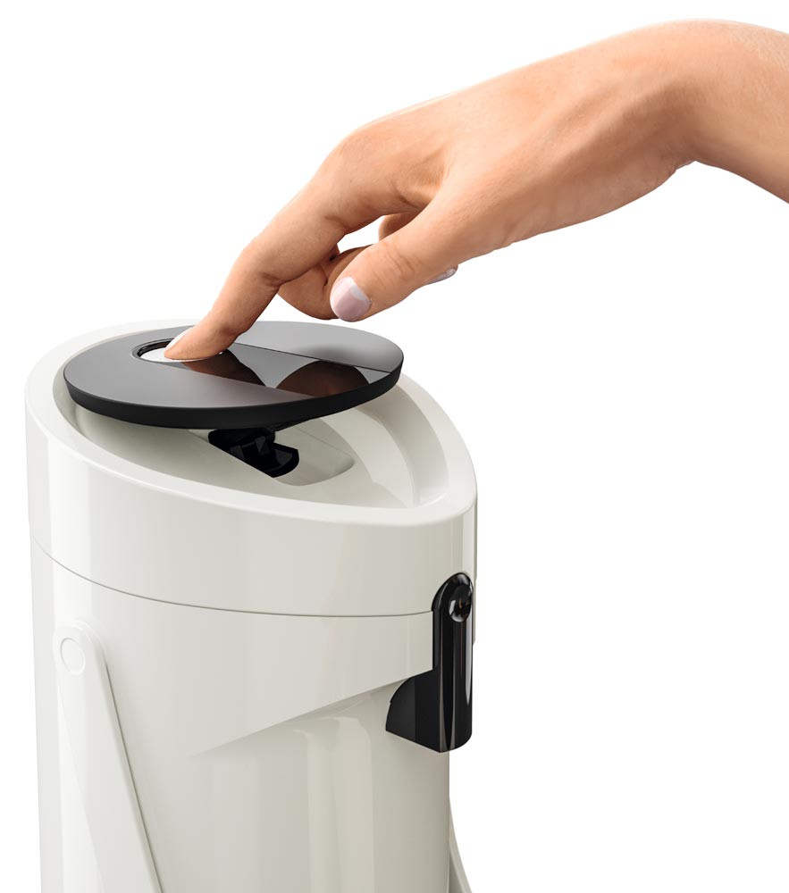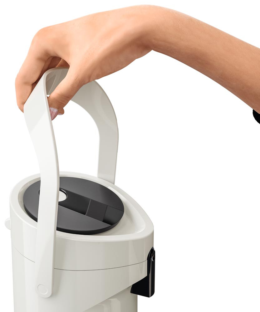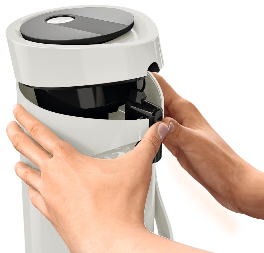 · Kunststoff-Gehäuse · Doppelwandiger Glas-Isolierkolben für 12 h heiße oder 24 h kalte Getränke · Hohe Pump-Leistung dank Komfort-Press-Pumpmechanismus mit breitem Druckknopf · Pump-Kopf komplett abnehmbar · Abnehmbare Tropfschale · Integrierter Tragegriff · Drehbarer Fuß zum problemlosen Schwenken · Leichtes Befüllen und einfache Reinigung per Hand
