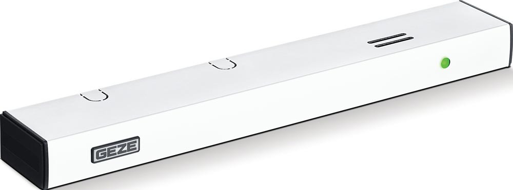 Teleskopfunktion zum Überbrücken ungünstiger Sturzsituationen · Anschluss an 230 V-Stromnetz und Versorgung der Feststellvorrichtung mit 24 V DC · Spannungsversorgung der Feststellanlage wird im Alarmfall unterbrochen und Türen schließen · integrierter Rauchschalter mit automatischer Alarmschwellennachführung · kompensiert leichte Verschmutzungen der Rauchkammer und erhöht dadurch die Lebensdauer · optische Anzeige des aktuellen Zustandes der Zentrale · zusätzliche Rauchschalter anschließbar · Anwendungsbereiche: zugelassen in allen GEZE Feststellvorrichtungen zur Früherkennung von Feuer und Rauch · schwierige Sturzsituationen mit z.B. zu wenig Raum über der Rauchkammer · Montage über der Türöffnung an der senkrechten Wand · Montage mit aufliegende Kabelzuführung möglich