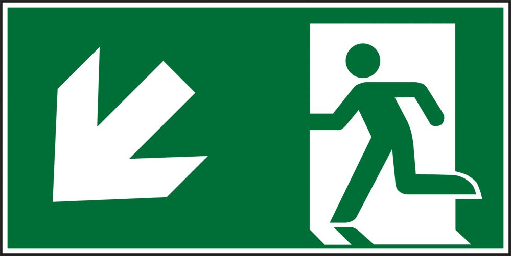 | Ausführung Rettungswegschild | Fluchtweg abwärts links |