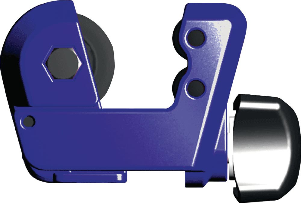 zum Schneiden von Aluminium, Kupfer und dünnwandigen Metallrohren · Körper, Schlitten und Drehknauf aus Zink-Druckguss · mit 1 Schneidrad · mit ICS-System · Schneidradwechsel ohne Werkzeug · mit stahlgelagerter Spindel · ergonoimscher Drehknauf · extrem reduzierter Arbeitsradius · Schneidrad aus DIN 100Cr6-Stahl, schwarz brüniert, Ø 19 mm · pulverbeschichtet · Ersatzschneidrad siehe Art.-Nr. 6009407