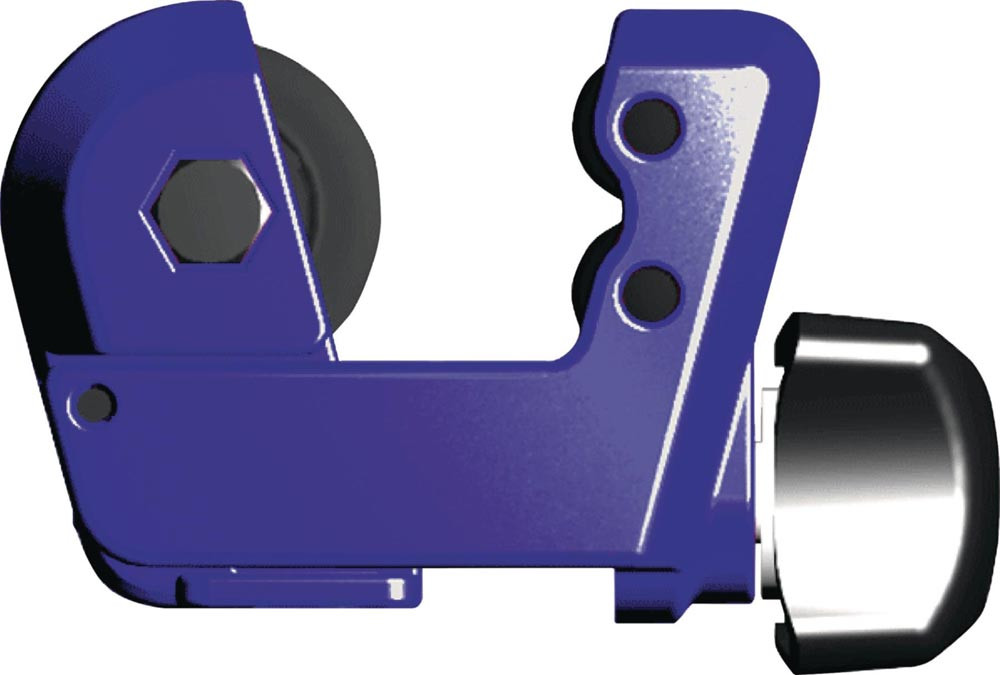 zum Schneiden von Aluminium, Kupfer und dünnwandigen Metallrohren · Körper, Schlitten und Drehknauf aus Zink-Druckguss · mit 1 Schneidrad · mit ICS-System · Schneidradwechsel ohne Werkzeug · mit stahlgelagerter Spindel · ergonoimscher Drehknauf · extrem reduzierter Arbeitsradius · Schneidrad aus DIN 100Cr6-Stahl, schwarz brüniert, Ø 19 mm · pulverbeschichtet · Ersatzschneidrad siehe Art.-Nr. 6497337