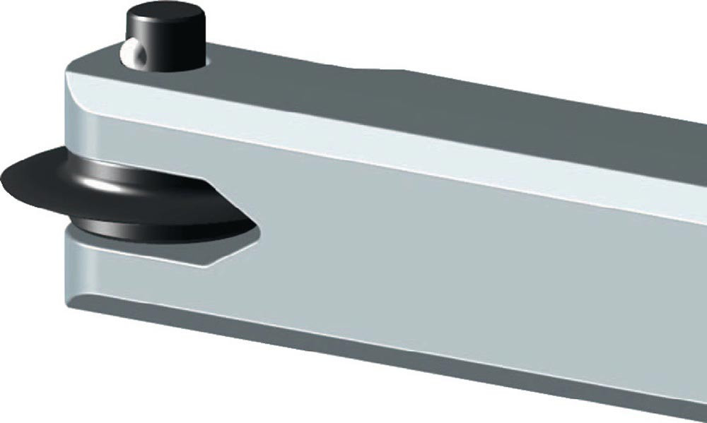 für dünnwandige Metallrohre aus AL, CU + INOX bis max. 2 mm · Körper aus Magnesium · Schlitten und Drehknauf aus Zink-Druckguss · mit stahlgelagerter Vorschub-Schnellspindel · Vierrollenführung · mit ausziehbarer NOGA-Entgrater-Klinge · Schneidrad aus DIN 100Cr6-Stahl, schwarz brüniert, Ø 19 mm · pulverbeschichtet · Schneidradwechsel ohne Werkzeug · Ersatzschneidrad im Drehknauf