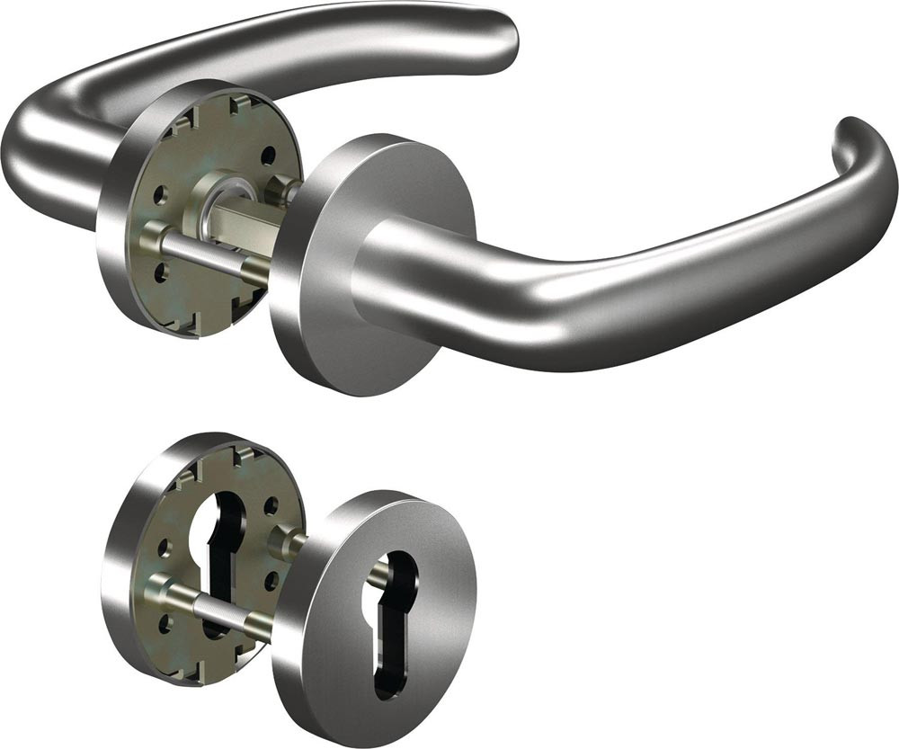 Rosettengarnitur CORE+8999 8mm / 6501 / 6612 PZ ER Edelstahl U-Form DIN links / rechts D/D