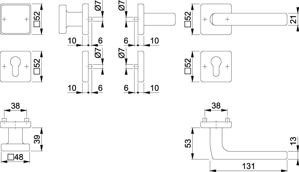 Rosettengarnitur Dallas E1643Z/52KV/52KVS Edelstahl F69 eckig OB DIN links / rechts D/D E6427529