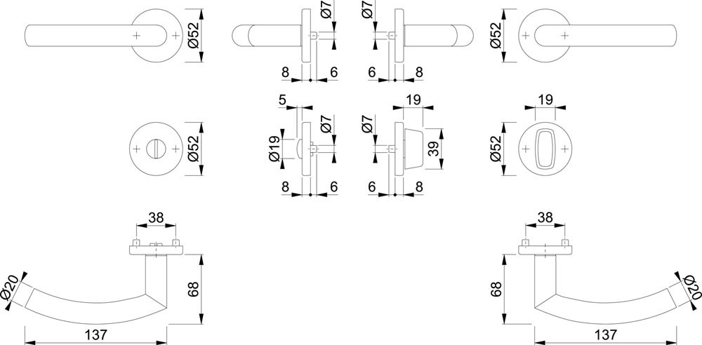 Rosettengarnitur Trondheim E1430Z/42KV/42KVS Edelstahl F69 rund SK/OL DIN links / rechts D/D