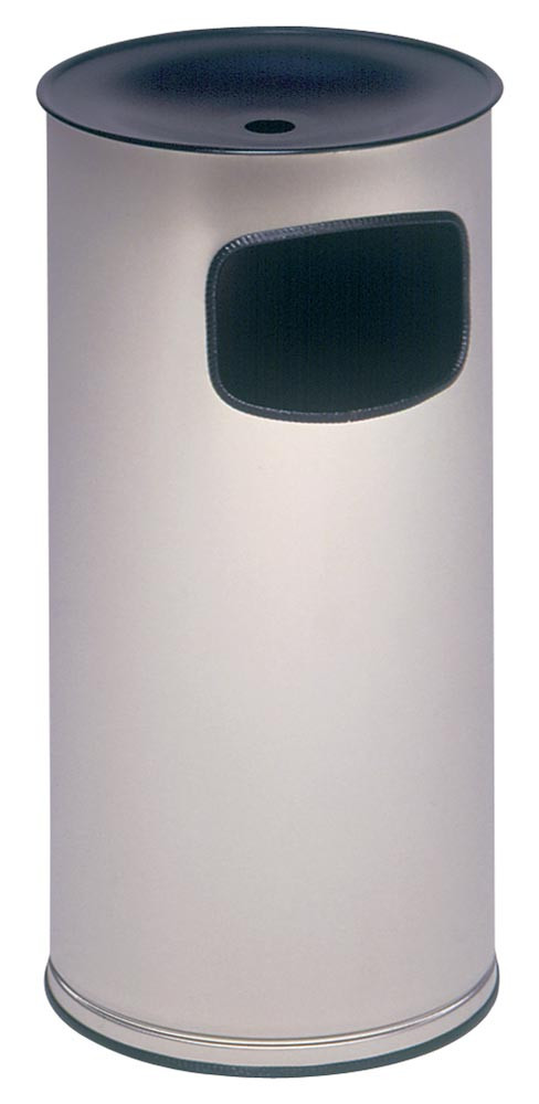 Runder Kombi-Ascher, Trichtereinwurf, Korpus Edelstahl, Aschereinsatz schwarz, mit Aluschale für Zigarettenabfall, Vol. 17 Liter, Durchm.xH 250x610 mm