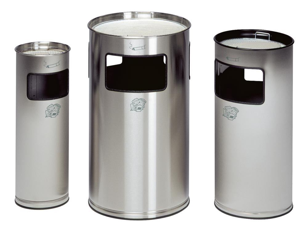 Runder Kombi-Ascher aus Edelstahl, Vol. 17 l, Aschereinsatz und Kippensieb aus Edelstahl, Höhe 660 mm, Durchm. 230 mm