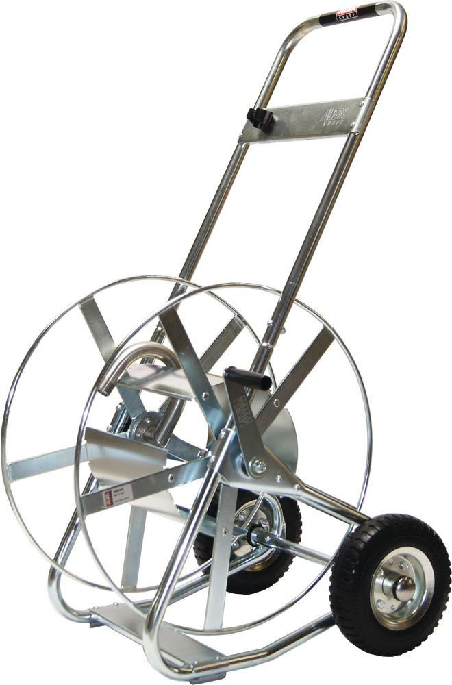 stabile Ganzstahlkonstruktion galvanisch verzinkt (Chrom 6 frei) · zentraler Wasserdurchlauf · doppelt gelagert · schlauchschonende Trommel: kein Schlauchknicken · durchgängig und druckbeständig · Dreharmatur kugelgelagert · Ø 17 cm rasenschonende Profilräder