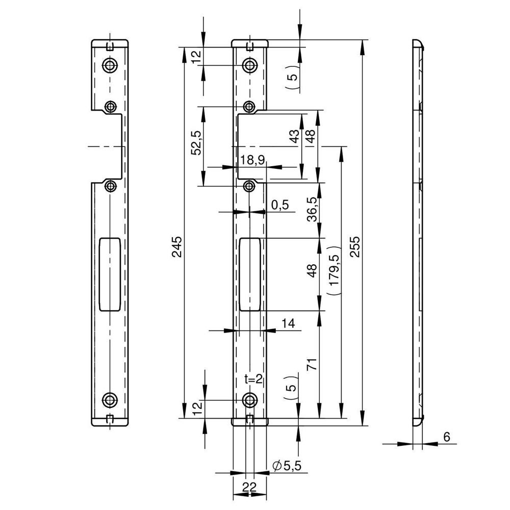 U-Schließblech Falle und Riegel für Rohrrahmentüren E-Öffner, DIN links, 245x22x6mm· Edelstahl matt gebürstet
