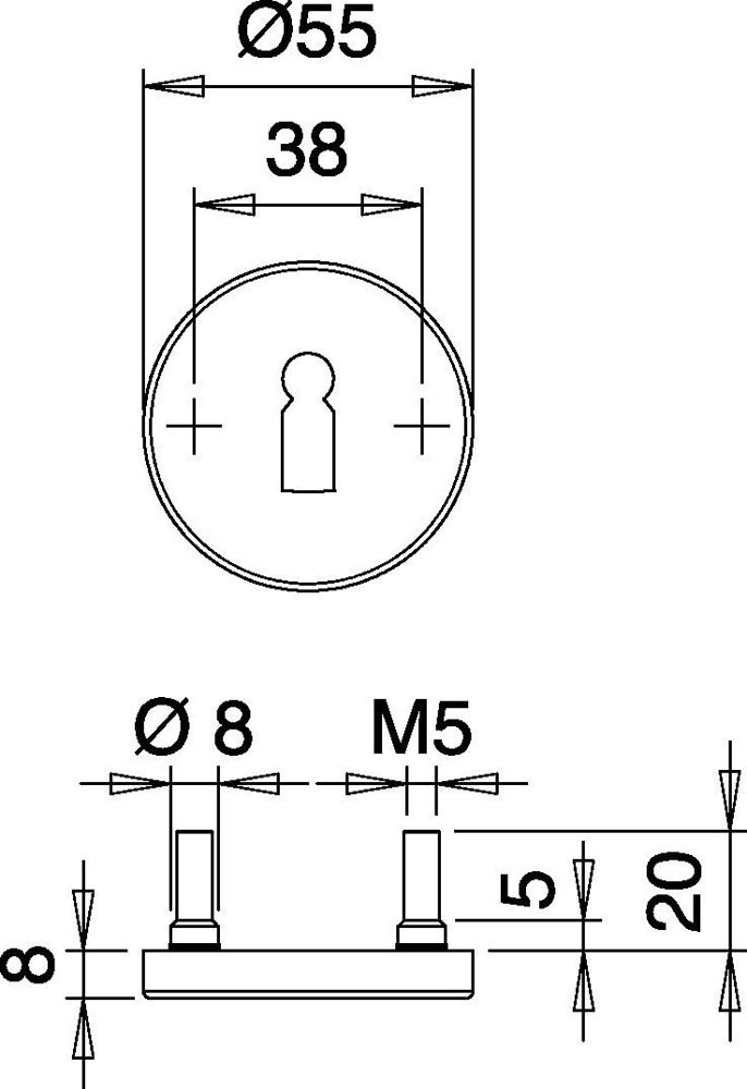Schlüsselrosetten-Paar 055 Edelstahl F00 Schildstärke 8 mm BB rund