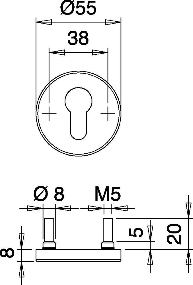 Schlüsselrosetten-Paar 056 Edelstahl F00 Schildstärke 8 mm PZ rund