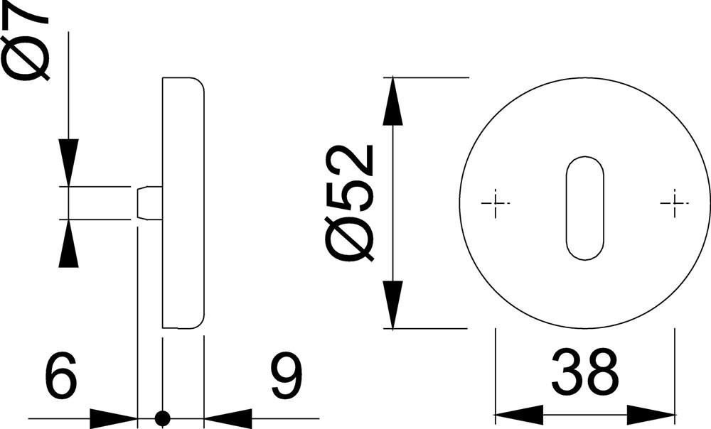 Rosetten-Ø 52 mm · Rosettenstärke 9 mm · Nockenabstand 38 mm · mit Befestigungsschrauben · für Türstärke 37-42 mm