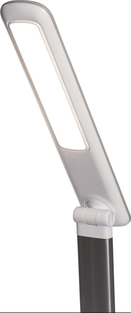 Aluminium · mit Standfuß · mit integriertem 5V, max. 500 mA USB Typ A Anschluss zum Aufladen von z. B. Smartphones · 5-Stufen-Dimmer mit Touchfeld-Bedienung am Leuchtenfuß · Leuchtenkopf 260 x 50 mm – Armlänge 365 mm – Höhe 425 mm ∙ Betriebsspannung 220 - 240 V · Lichtfarbe 4.000 Kelvin - neutralweiß · Lebensdauer 20.000 Stunden · Lichtstrom 716 Lumen · gewichteter Energieverbrauch 6 kWh/1000 h · Energieeffizienzklasse E (Spektrum A bis G)