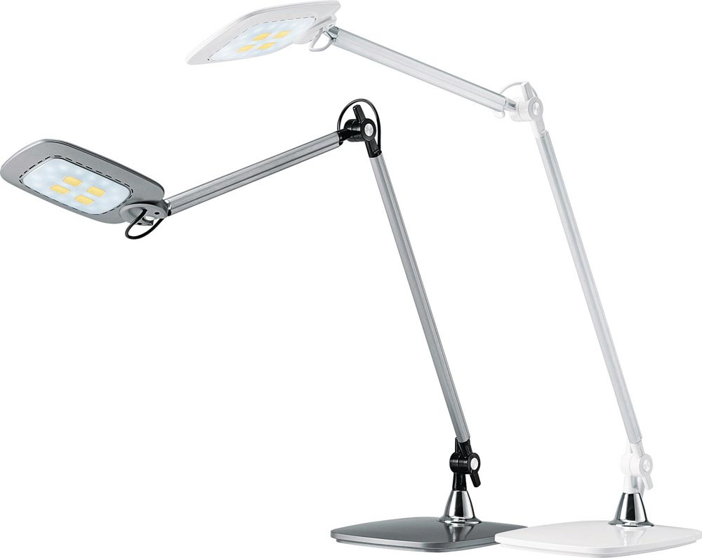 Aluminium/Kunststoff · mit Standfuß · Leuchtenkopf vielseitig verstellbar · Sensorschalter am Kopf ermöglicht Ein- und Ausschalten durch Handbewegung · stufenlos dimmbar, inkl. Memory-Funktion · Ausladung max. 650 mm - Höhe max. 750 mm · Betriebsspannung 100-240 V · Lieferung inkl. Leuchtmittel (10 W LED), 3.300/5.000 Kelvin - neutralweiß 6.500 Kelvin - tageslichtweiß · Brenndauer - 20.000 Stunden ∙ gewichteter Energieverbrauch 10 kWh/1000h · Effizienzklasse A (Spektrum A++ bis E) · diese Leuchte enthält eingebaute LED-Lampen · die Lampen können nicht ausgetauscht werden