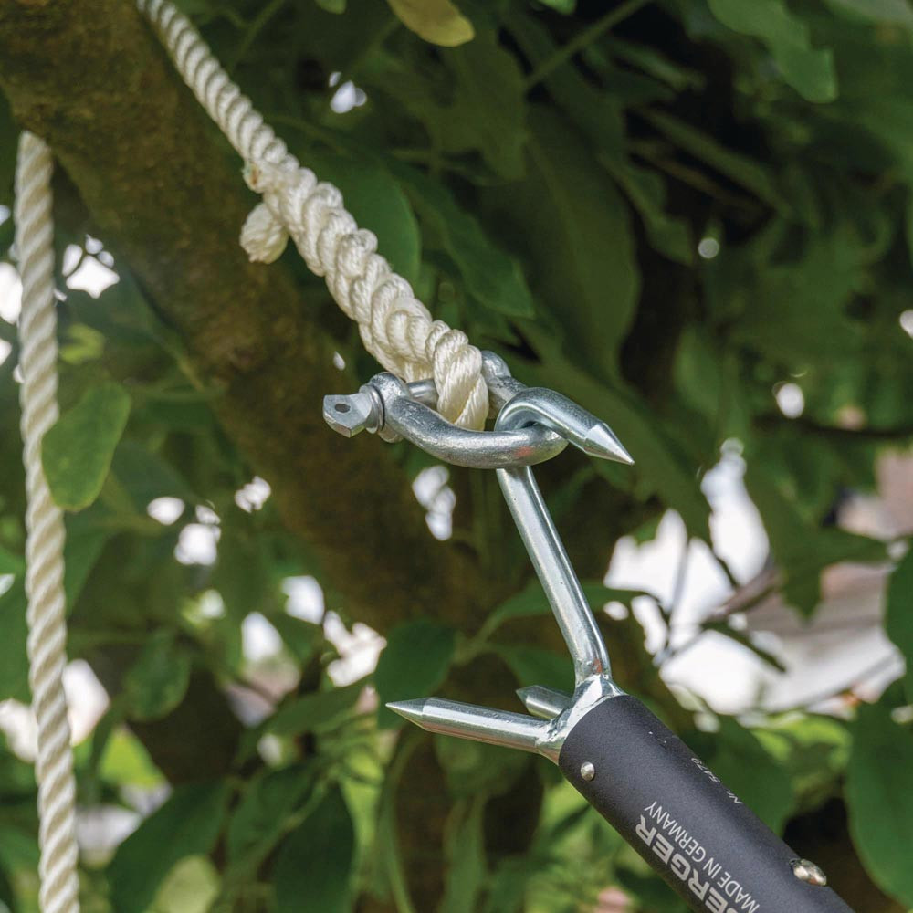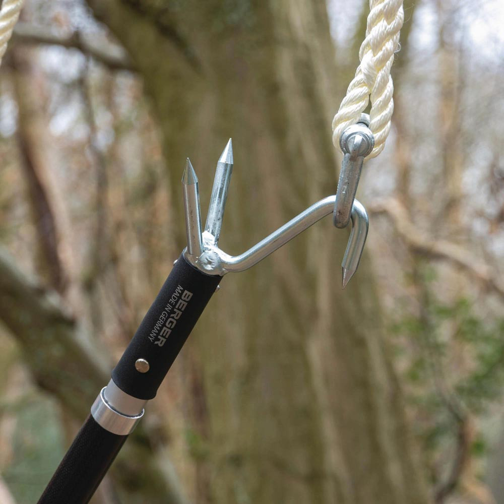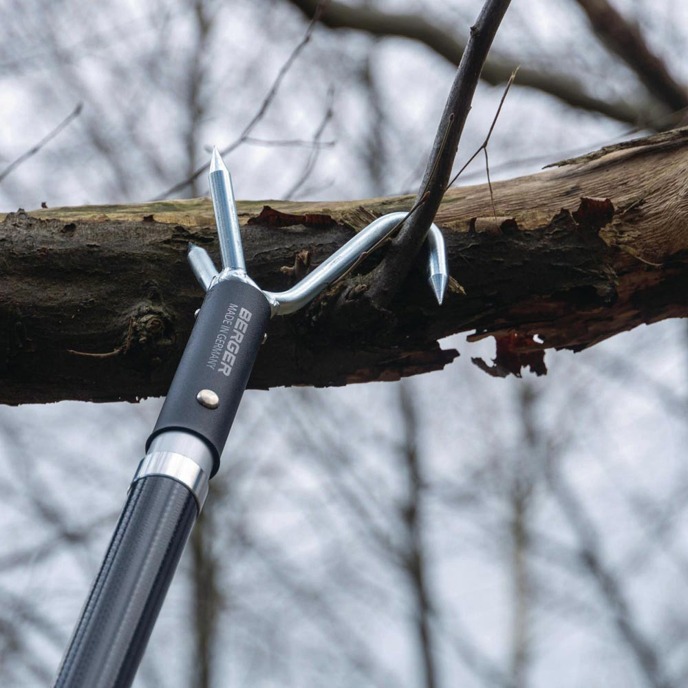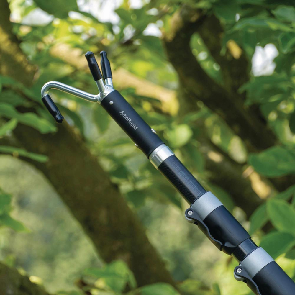 mit Anschlagkralle ArboRapid 5479 · robuste Aluminiumkralle für sicheres Fixieren und Stabilisieren von Ästen · erleichtert das gezielte Abtrennen von Ästen in der Baumpflege · verhindert unkontrolliertes Abrutschen · ideal für präzise Schnittführung mit Aufsatzsägen · kompatibel mit allen ArboRapid Teleskopstangen