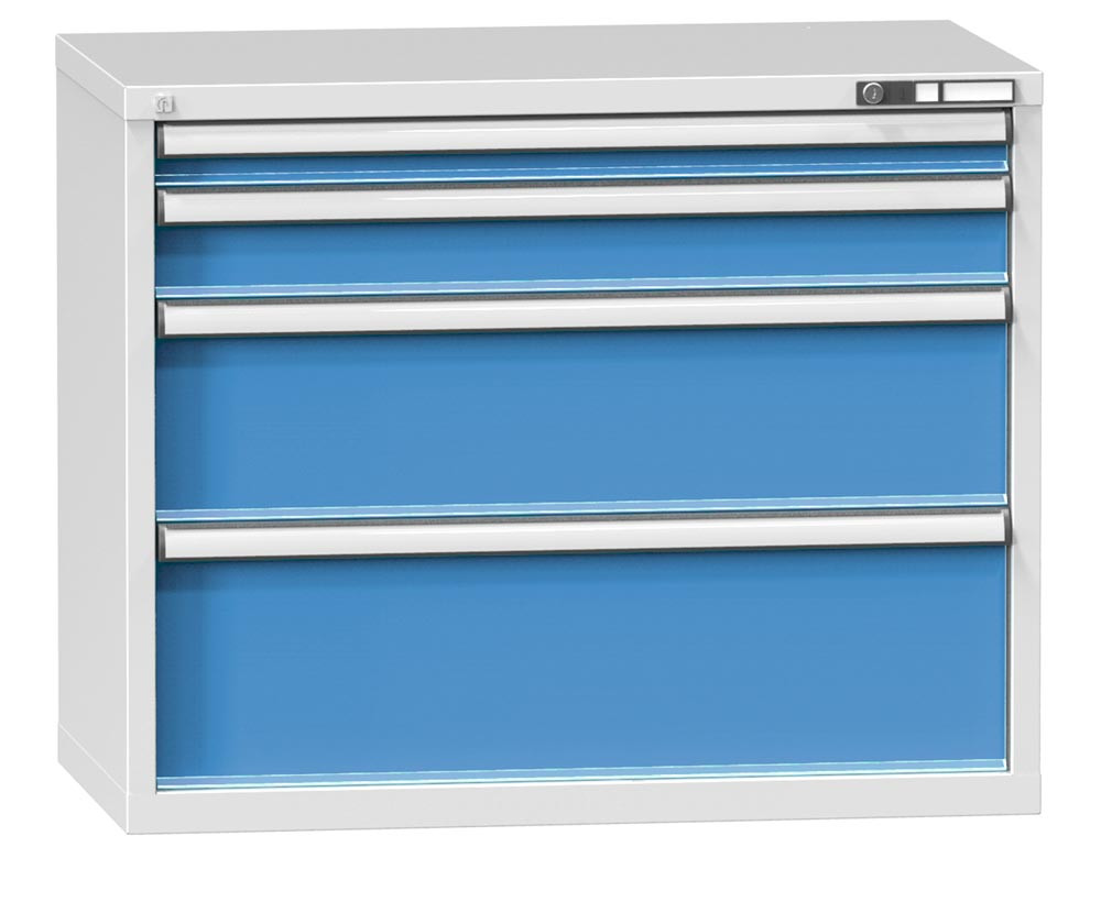 Schubladenschrank, 4 Schubladen: 75, 125, 250, 300 mm, BxTxH 1037x600x840 mm, RAL 7035/5012 EP557733