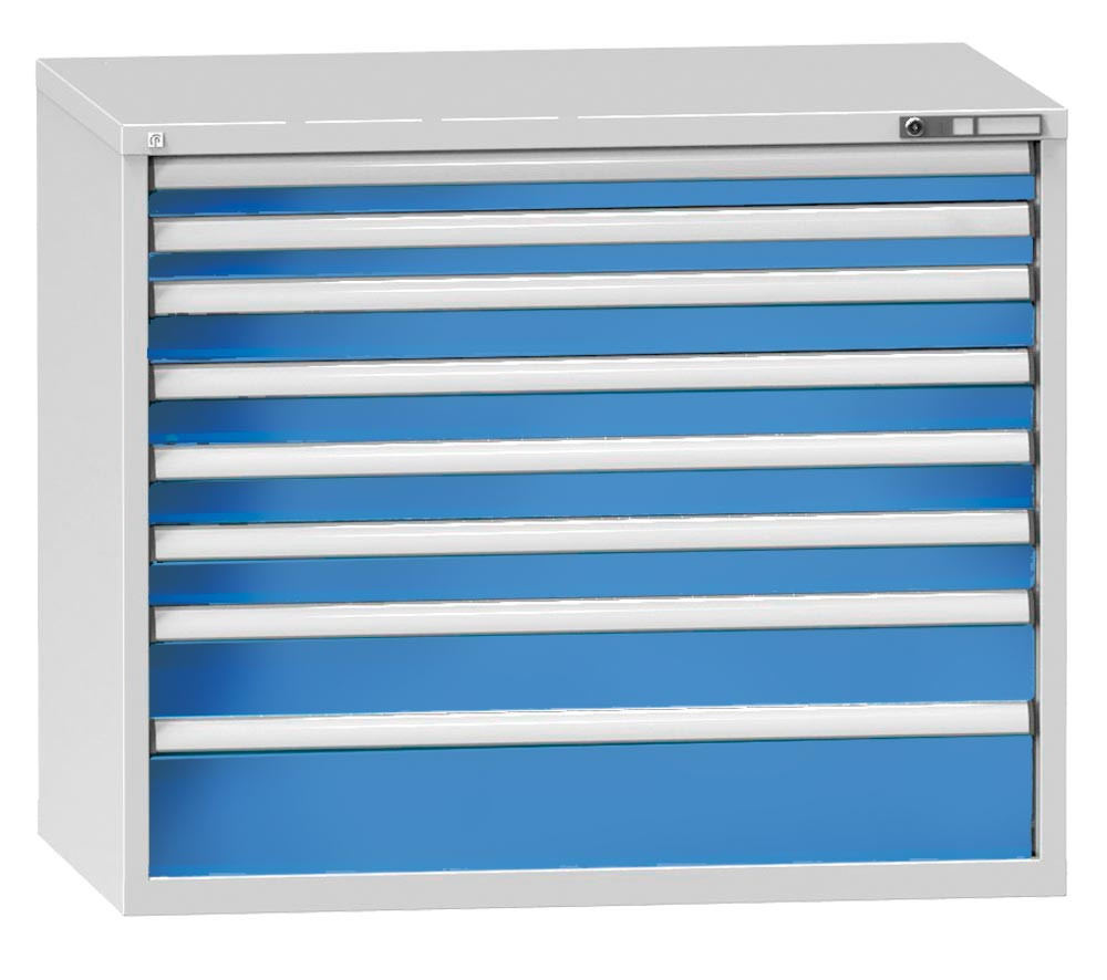 Schubladenschrank, 7 Schubladen: 2x75, 2x100,2x125,1x150 mm, BxTxH 1190x780x840 mm, RAL 7035/5012 EP563114