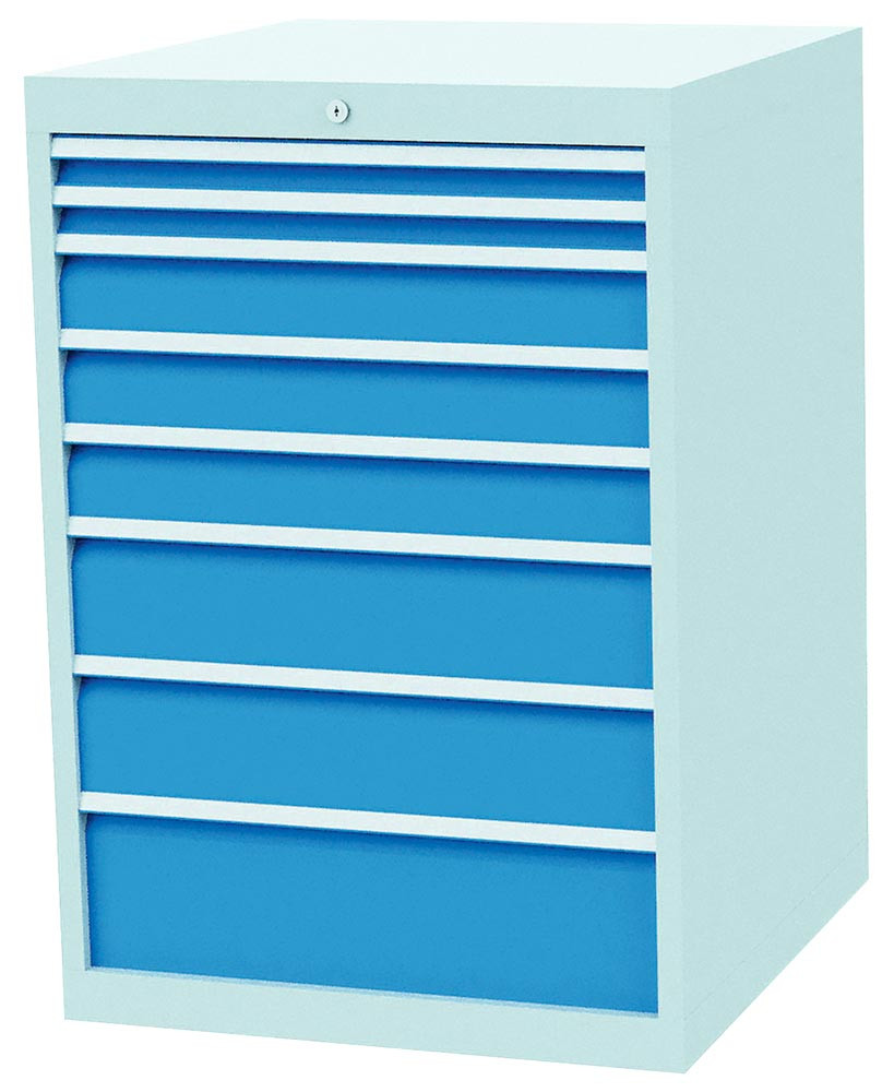 Schubladenschrank, 8 Schubladen 2x50,3x100,2x150,1x200mm, Zylinderschloss, BxTxH705x736x1019mm, RAL7035/5012