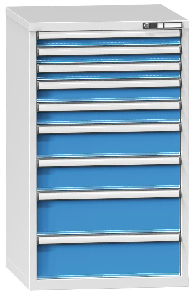 Schubladenschrank, 7 Schubladen: 1x75, 2x100, 1x125, 2x150, 1x200 mm, BxTxH 731x753x990 mm, RAL 7035/5012 EP528926