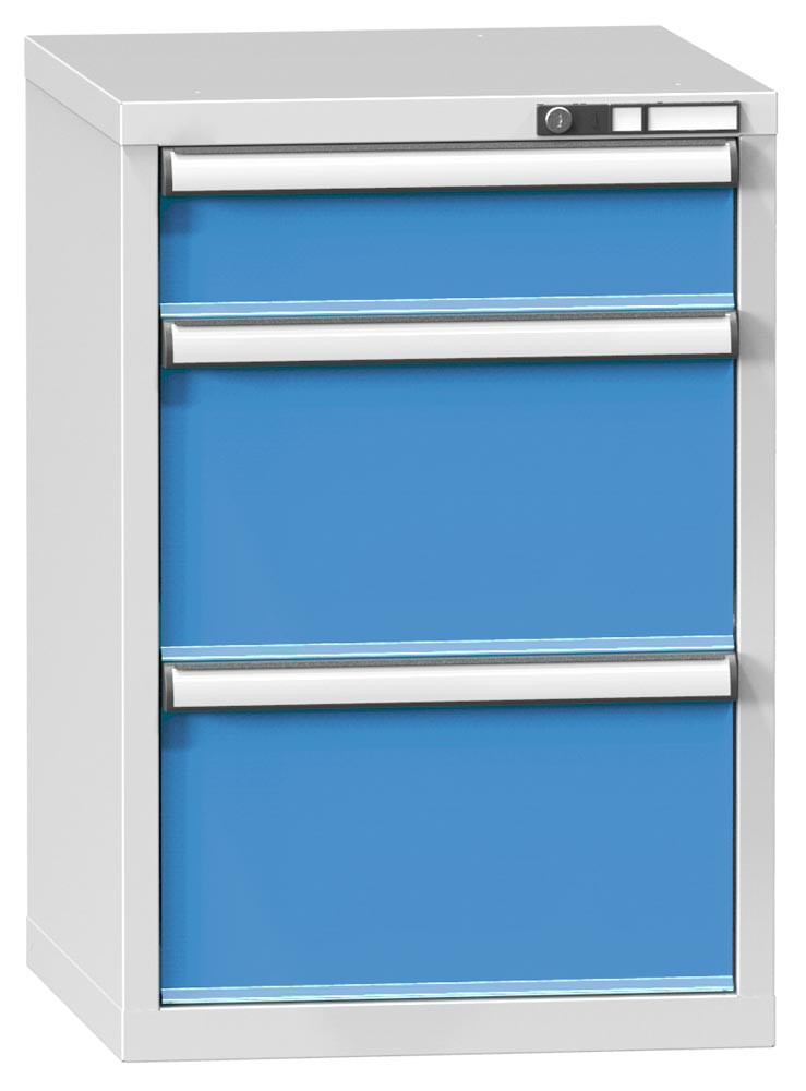 Schubladenschrank, BxTxH 578x600x840 mm, 3 Schubladen 150, 2x300 mm, RAL 7035/5012