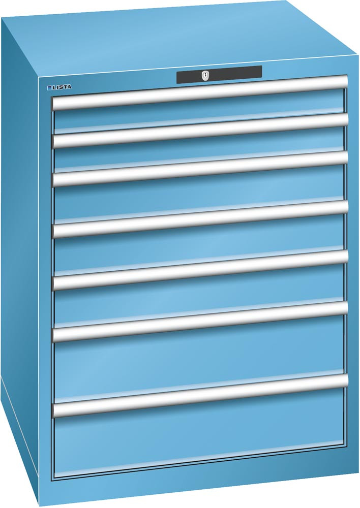 Schubladenschrank, Traglast/Schubl.: 75 kg, 7 Schubl.: 2x75, 3x100, 2x150 mm, RFID-Schloss, BxTxH 717x725x850 mm, RAL 5012 EP554853