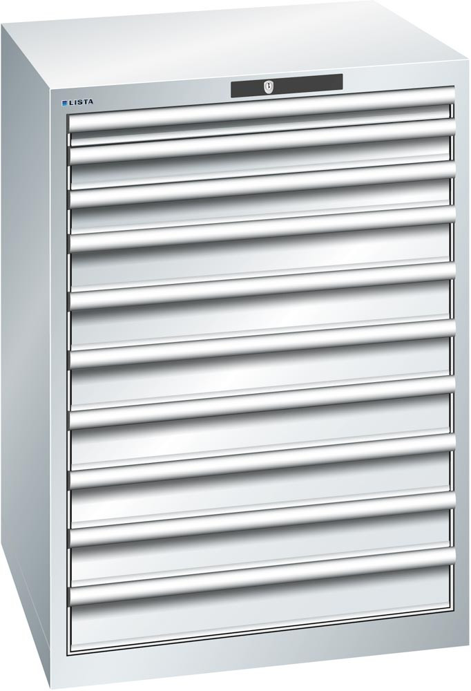 Schubladenschrank, Traglast/Schubl.: 75 kg, 10 Schubl.: 1x50, 2x75, 7x100 mm, RFID-Schloss, BxTxH 717x725x1000 mm, RAL 7035 EP554874