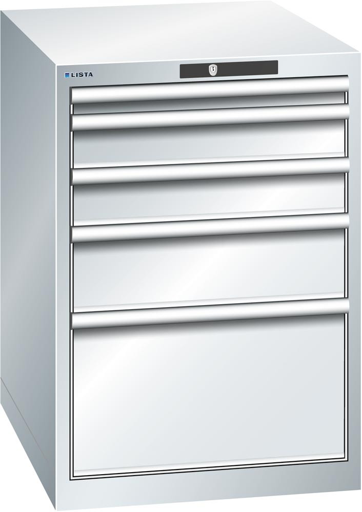 5 Schubladen: 1 x 50 mm VA, 2 x 100 mm VA, 1 x 150 mm VA, 1 x 300 mm VA