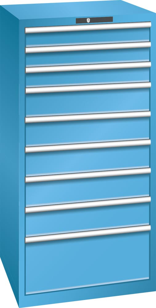 Schubladenschrank, Traglast/Schubl.: 75 kg, 9 Schubl.: 3x100, 5x150, 1x300 mm, RFID-Schloss, BxTxH 717x725x1450 mm, RAL 5012 EP554881
