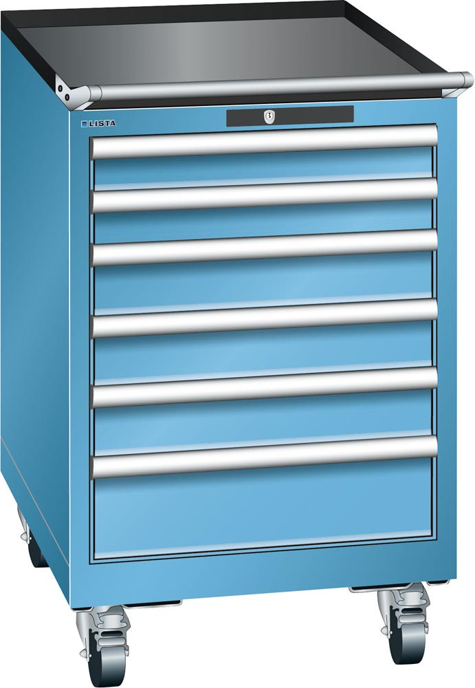 Schubladenschrank, Traglast/Schubl.: 75 kg, fahrbar, 6 Schubladen: 2x75, 3x100,150 mm, RFID-Schloss, BxTxH 564x572x890 mm, RAL 5012 EP554837