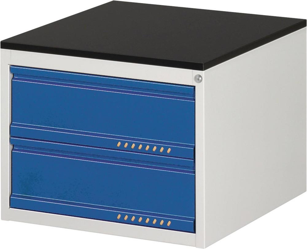 Schubladenschrank BK 650 H460xB580xT650mm lichtgrau/enzianblau 2 Schubl. Einfachauszug