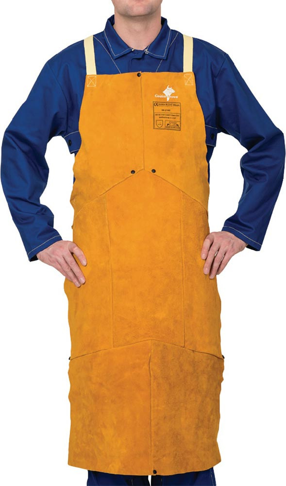 EN ISO 11611:2015 Kl. 2/A1+A2, TÜV BP 60132827 0001 · aus Rindspaltleder · Lederstärke 1 mm · selbstausgleichendes Gurtsystem