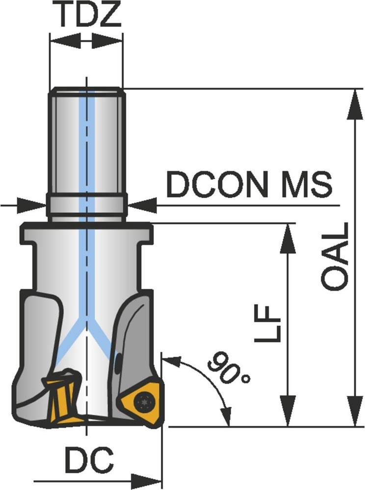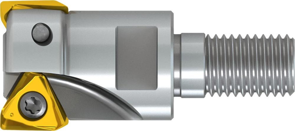 Eck-und Planfräser mit doppelt negativer Geometrie welche 2 aus TNGX 1606.. doppelseitige Wendeschneidplatte · Schneiddurchmesser 25mm mit 90° Anfahrwinkel und M12 Gewindeschaft für standardisierte modulare Trägerwerkzeuge · 33mm anwendbar und 55mm Einsatzlänge · durchgehende Kühlung zum Planfräsen · flachen Schulterfräsen · flachen Nutfräsen und Spiralfräsen in vorbearbeiteten Löchern