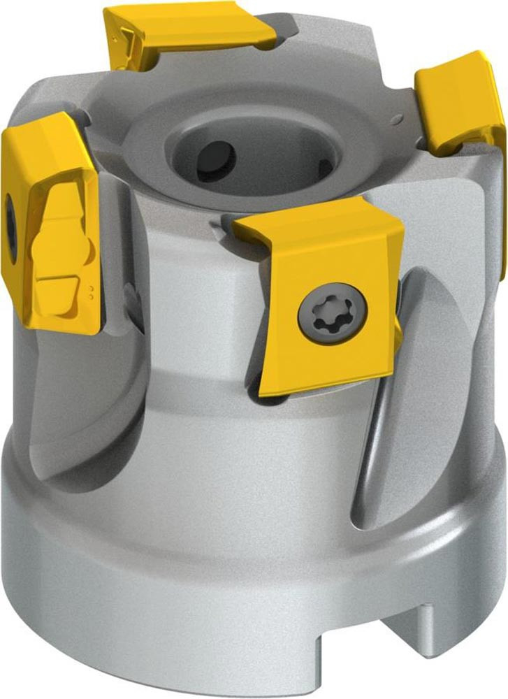 Eckfräser mit doppelt negativer Geometrie welche 4 aus LNEX 1210.. doppelseitige Wendeschneidplatte · Schneiddurchmesser 40mm mit 90° Anfahrwinkel und 16mm Bohrung gemäß DIN 8030-A · 40mm funktional und · durchgehende Kühlung und ungleicher Teilung zum Planfräsen · flachen Schulterfräsen · tiefen Schulterfräsen · Tauchfräsen und flachen Nutfräsen mit einer maximalen Schnitttiefe von 10mm