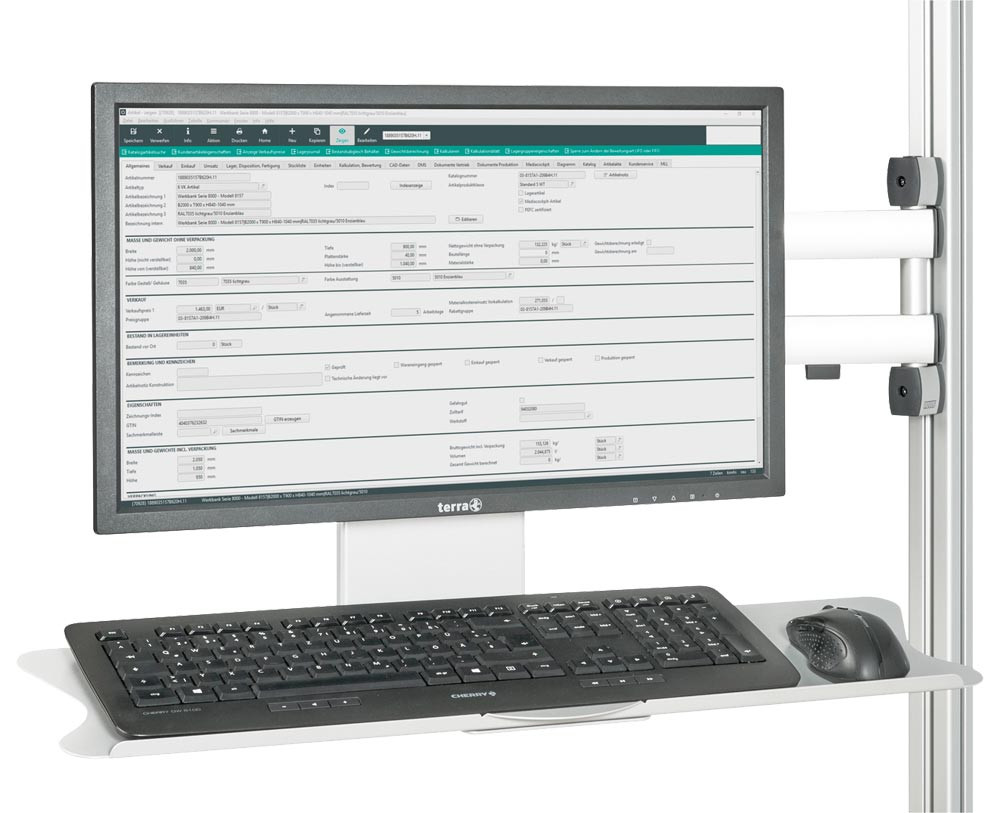 · Für Flachbildschirm, Tastatur und Maus · Inkl. Adapter zur Aufnahme von Flachbildschirmen · Belastbar bis max. 15 kg · Montage an Komplettaufbau 1-4 oder LEER