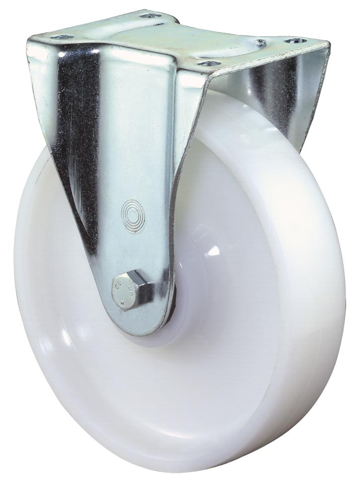 Schwerlast-Bockrolle, Kunststoff weiß, Durchm. 150 mm, Traglast 800 kg, Kugellager, Anschraubplatte