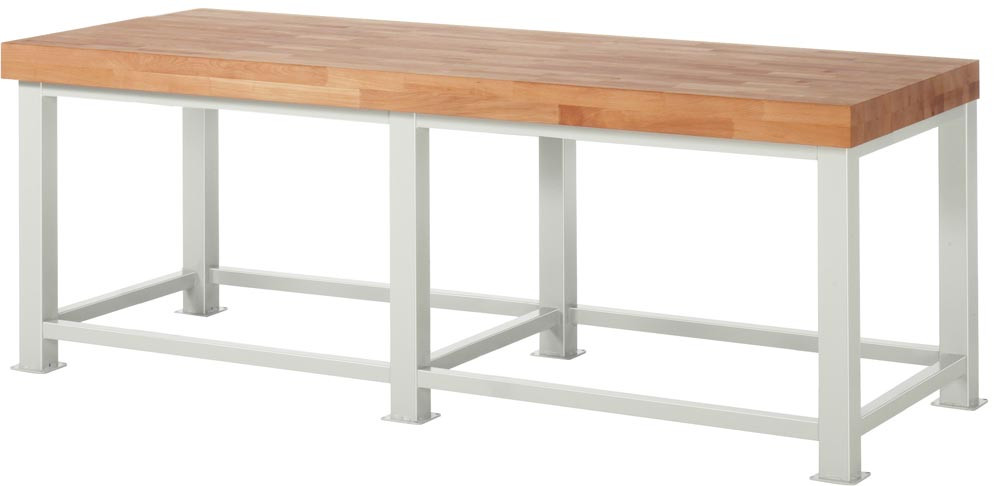 Schwerlastwerkbank, Platte Buche 100 mm, BxTxH 2500x900x900 mm, RAL 7035, Flächenlast 4.500 kg