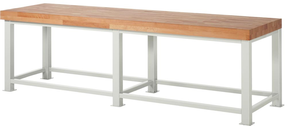 Schwerlastwerkbank, Platte Buche 100 mm, BxTxH 3000x900x900 mm, RAL 7035, Flächenlast 4.500 kg