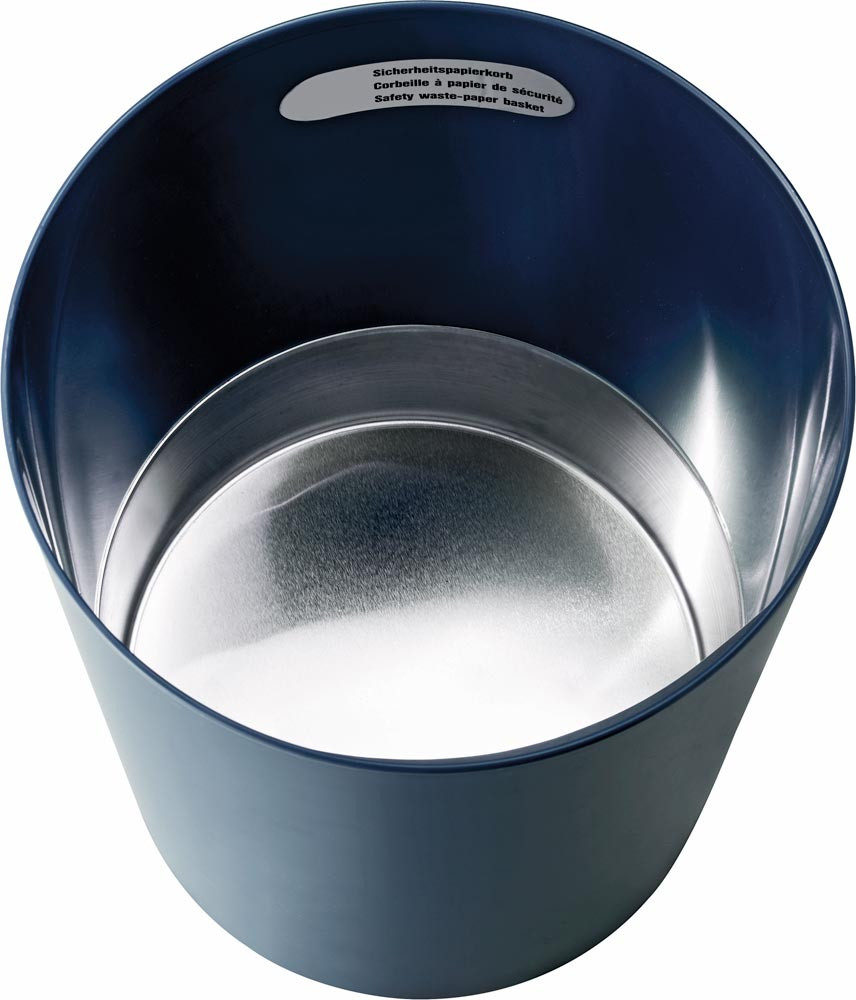 Sicherheits-Papierkorb, Kunststoff schwer entflammbar, Metallboden, Volumen 13 l, Durchm.xH 250x300 mm, blau, VE 5 Stück