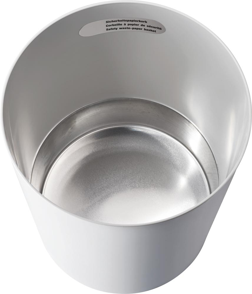 · Aus schwer entflammbarem Sicherheitskunststoff · Er verhindert, dass ein im Papierkorb entstandenes Feuer auf die Umgebung übergreift - die höchste Stufe der Sicherheit aus Kunststoff · TÜV-geprüft