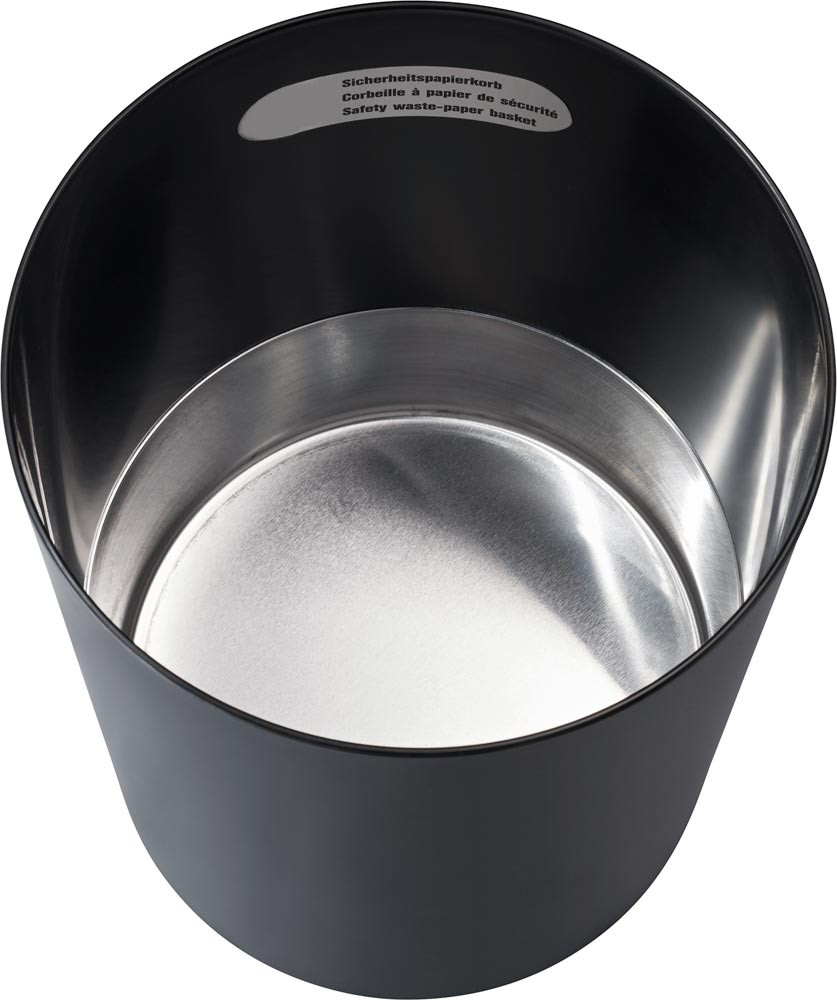 · Aus schwer entflammbarem Sicherheitskunststoff · Er verhindert, dass ein im Papierkorb entstandenes Feuer auf die Umgebung übergreift - die höchste Stufe der Sicherheit aus Kunststoff · TÜV-geprüft