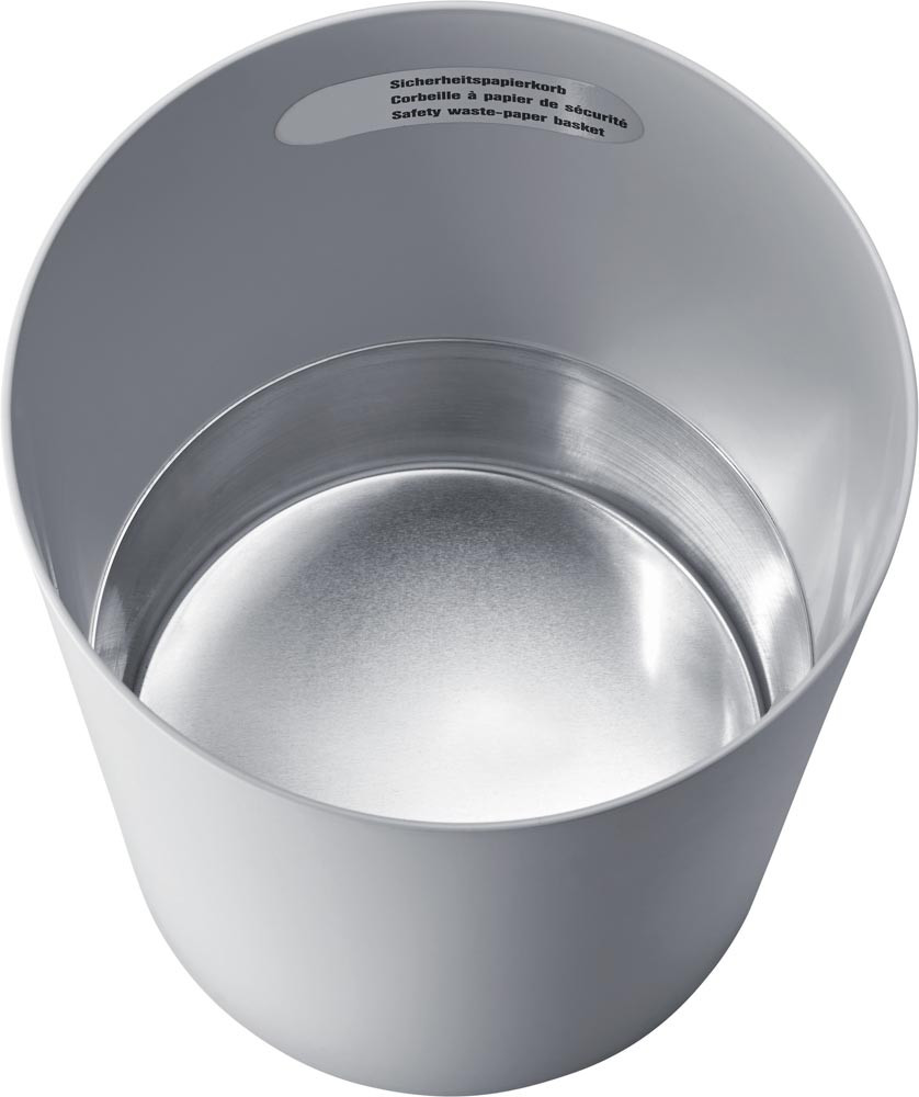 · Aus schwer entflammbarem Sicherheitskunststoff · Er verhindert, dass ein im Papierkorb entstandenes Feuer auf die Umgebung übergreift - die höchste Stufe der Sicherheit aus Kunststoff · TÜV-geprüft
