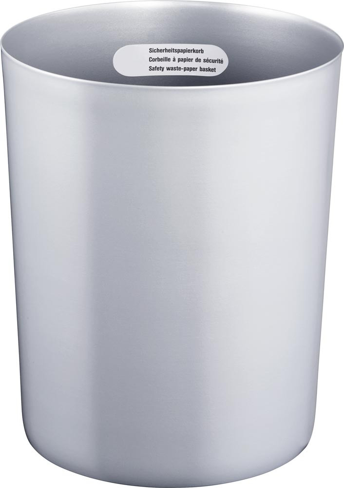 Sicherheits-Papierkorb, Kunststoff schwer entflammbar, Metallboden, Volumen 13 l, Durchm.xH 250x300 mm, silber, VE 5 Stück