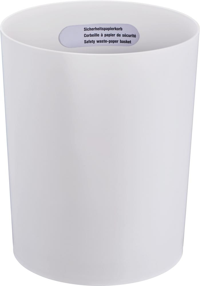 · Aus schwer entflammbarem Sicherheitskunststoff · Er verhindert, dass ein im Papierkorb entstandenes Feuer auf die Umgebung übergreift - die höchste Stufe der Sicherheit aus Kunststoff · TÜV-geprüft