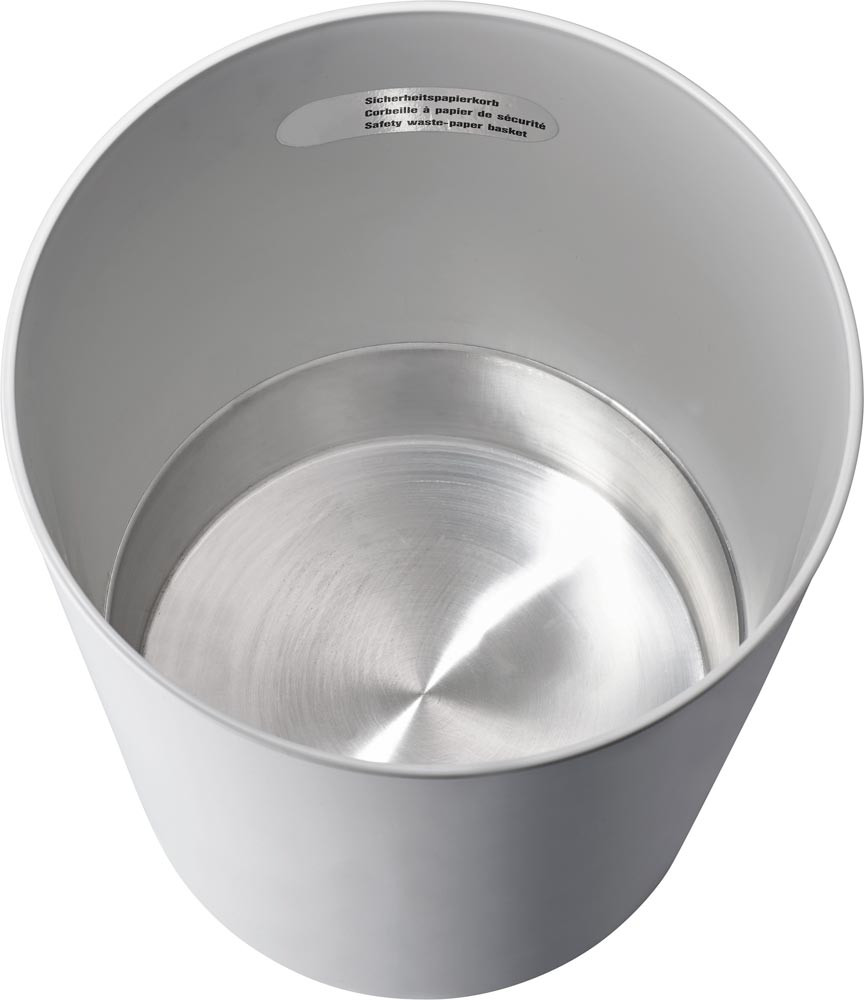 Sicherheits-Papierkorb, Kunststoff schwer entflammbar, Metallboden, Volumen 20 l, Durchm.xH 280x340 mm, hellgrau, VE 3 Stück