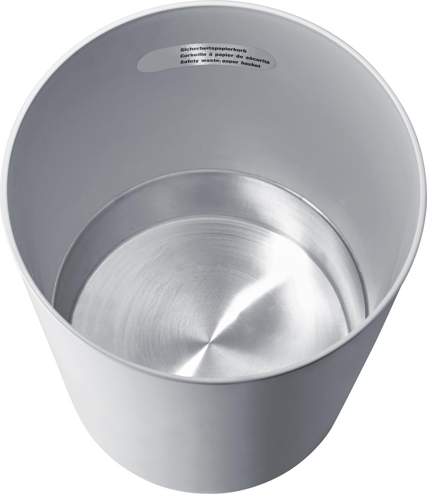 · Aus schwer entflammbarem Sicherheitskunststoff · Er verhindert, dass ein im Papierkorb entstandenes Feuer auf die Umgebung übergreift - die höchste Stufe der Sicherheit aus Kunststoff · TÜV-geprüft