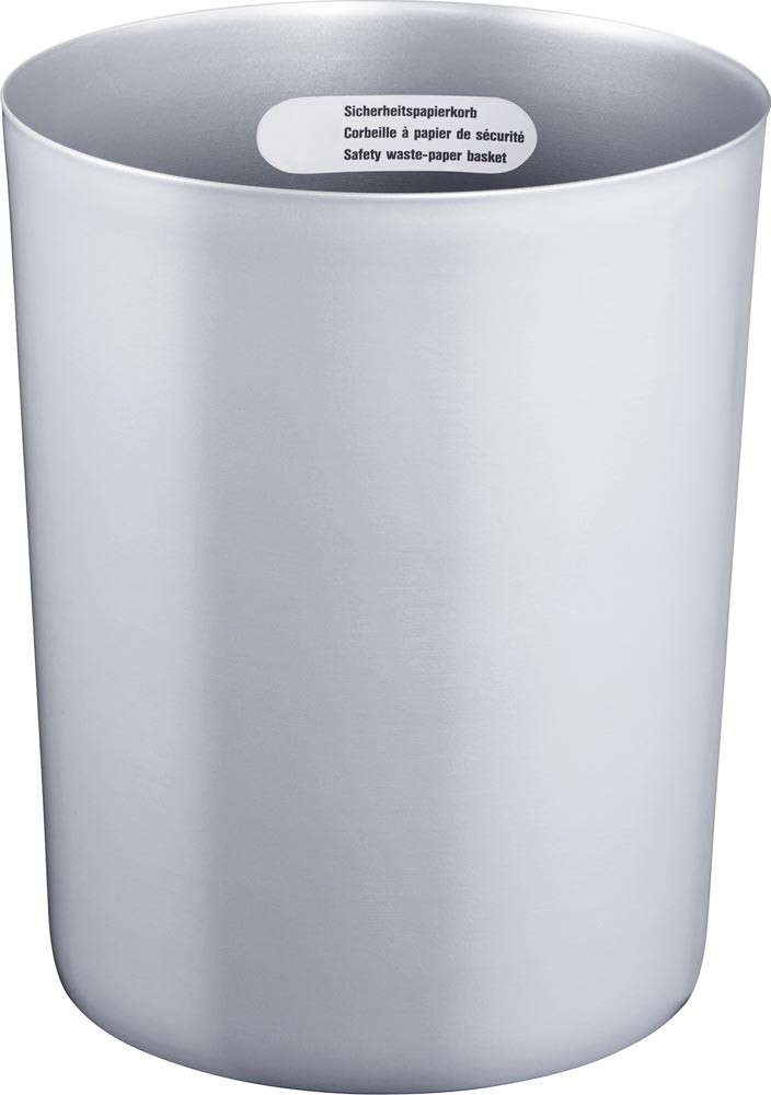 Sicherheits-Papierkorb, Kunststoff schwer entflammbar, Volumen 20 l, Durchm.xH 280x340 mm, silber, VE 5 Stück